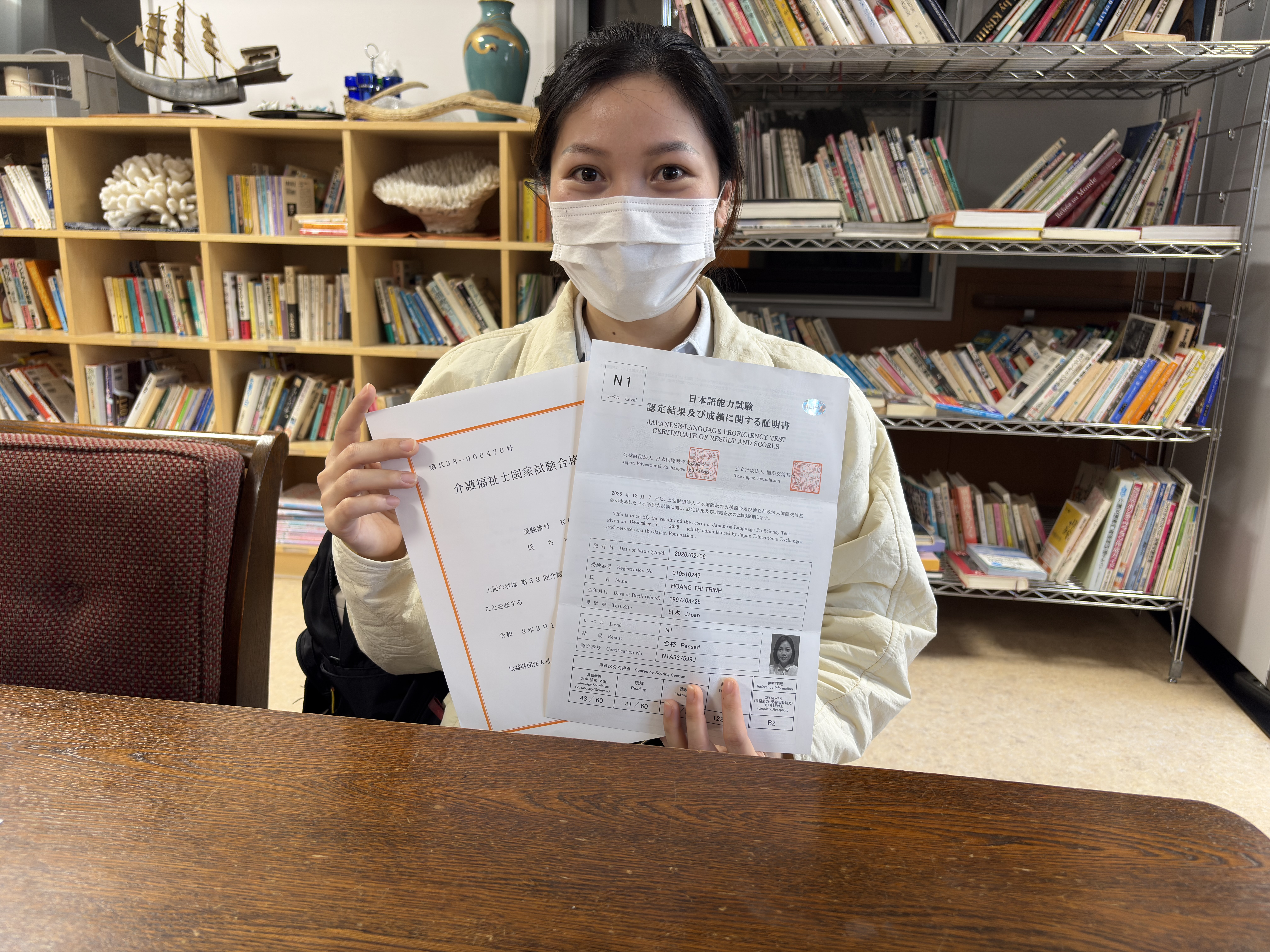 日本語能力試験N1、介護福祉士国家試験合格